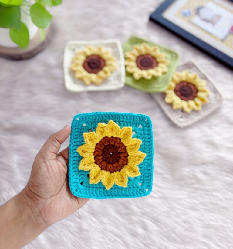 [ Skip next st, 3 dc in next st, skip next st, 3 dc in next st, skip next st, (3 tr, ch 2, 3 tr) in next st ] x 3